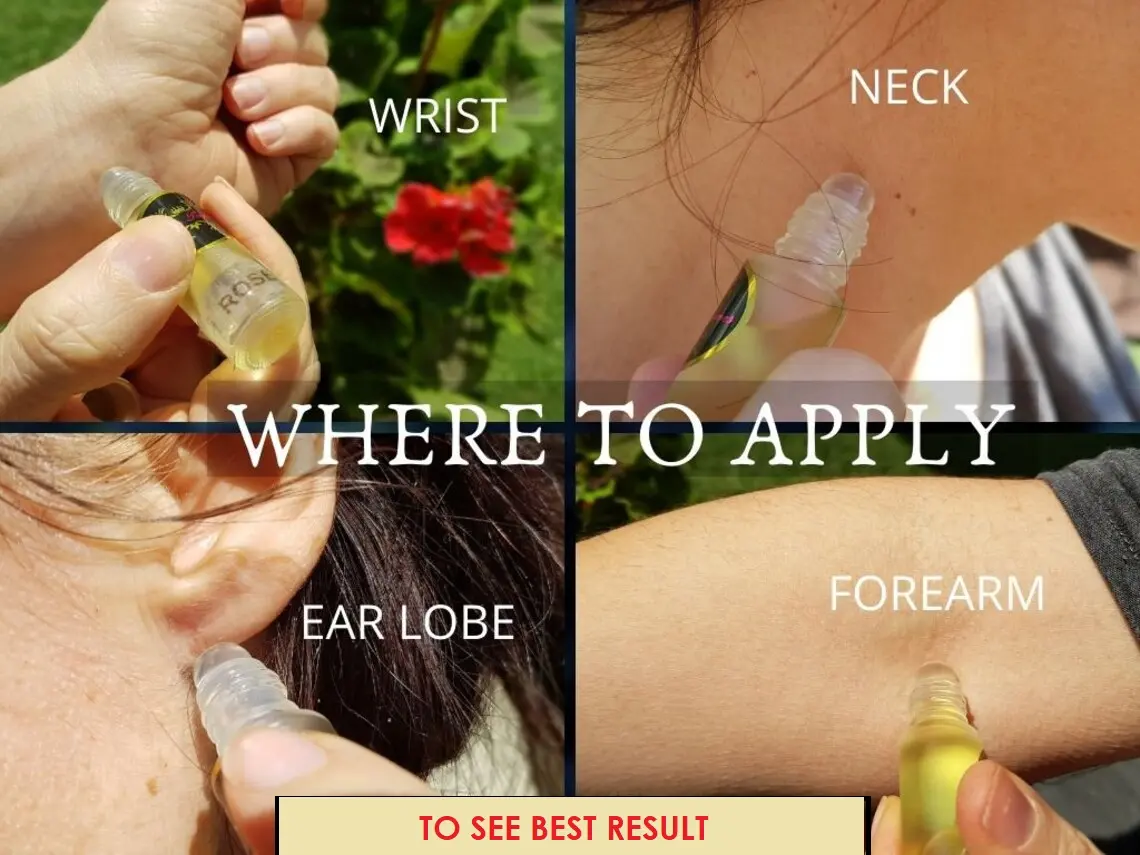 - Roll directly onto pulse points: wrists, neck, or behind the ears.