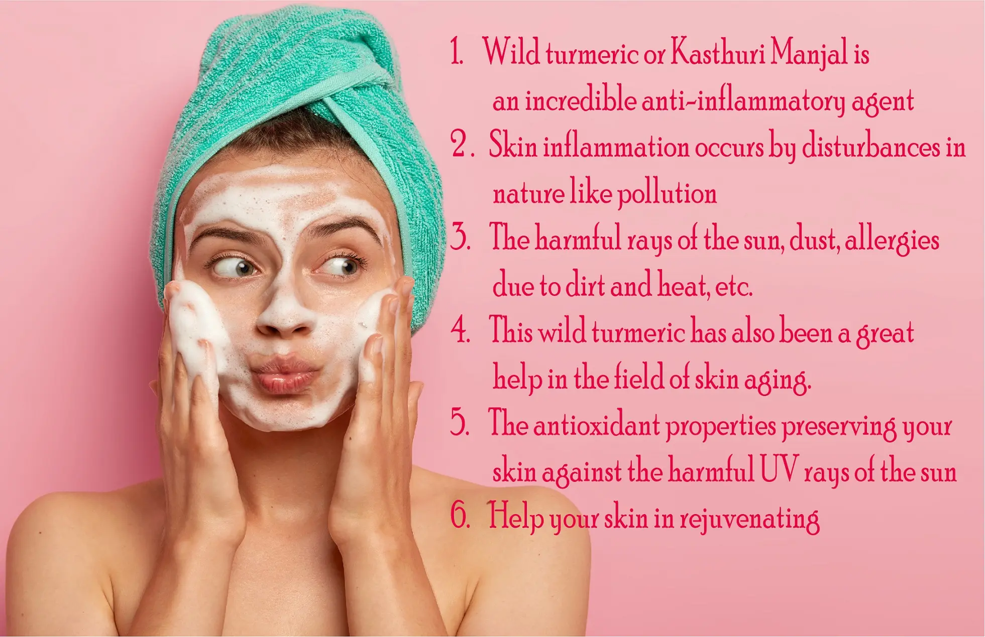 Kasturi Manjal, or wild turmeric, has been used in South Indian households for centuries. Unlike regular turmeric, it doesn’t stain the skin and is specifically prized for its cosmetic use. Here are the key benefits of Kasturi Manjal:
