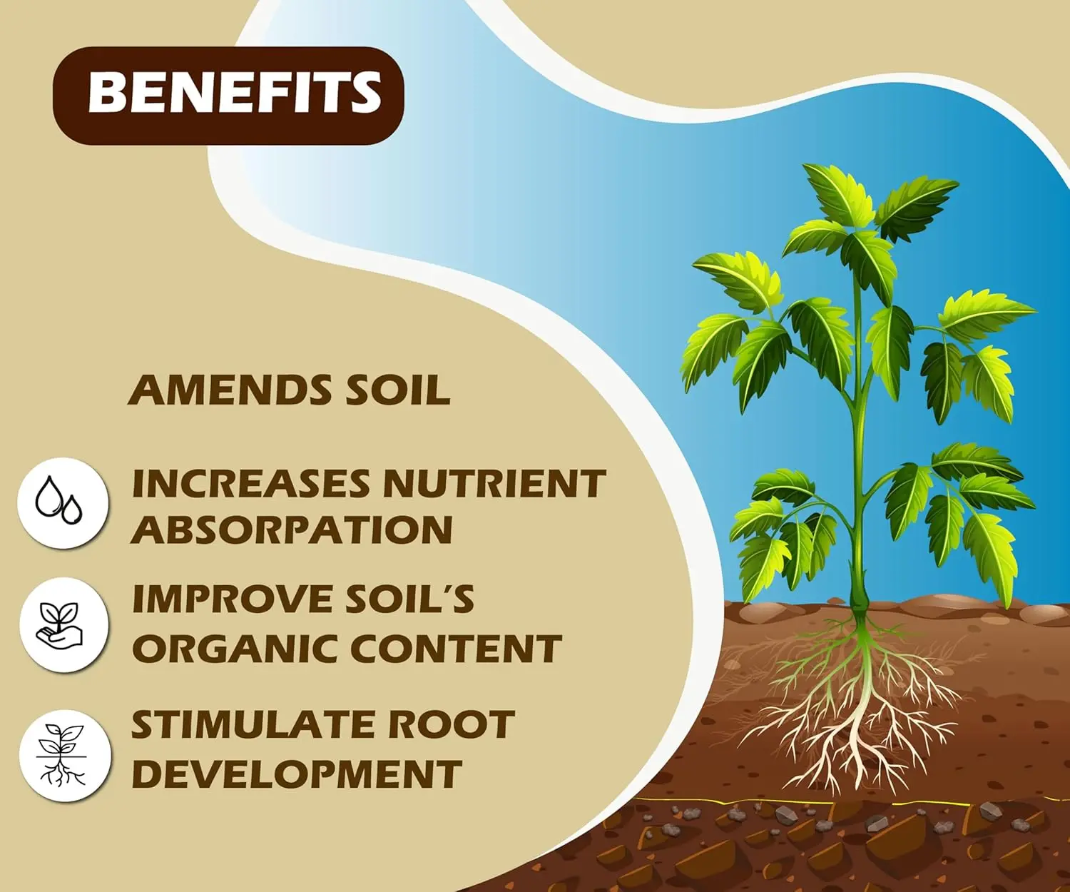 Acts as a natural soil conditioner. Enhances microbial activity, increases organic matter, and balances pH levels. - Promotes Root Development